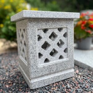 Hallist graniidist valmistatud väärikas kalmulatern eridisainiga. Lihtne, soliidne ja ajatult kaunis disain sobib nii hauaplatsile kui ka dekoratiivseks valgusallikaks koduõues, terrassil või aiateel. Kõrgem sisemine ruum võimaldab kasutada suuremat ja kauem põlevat küünalt.