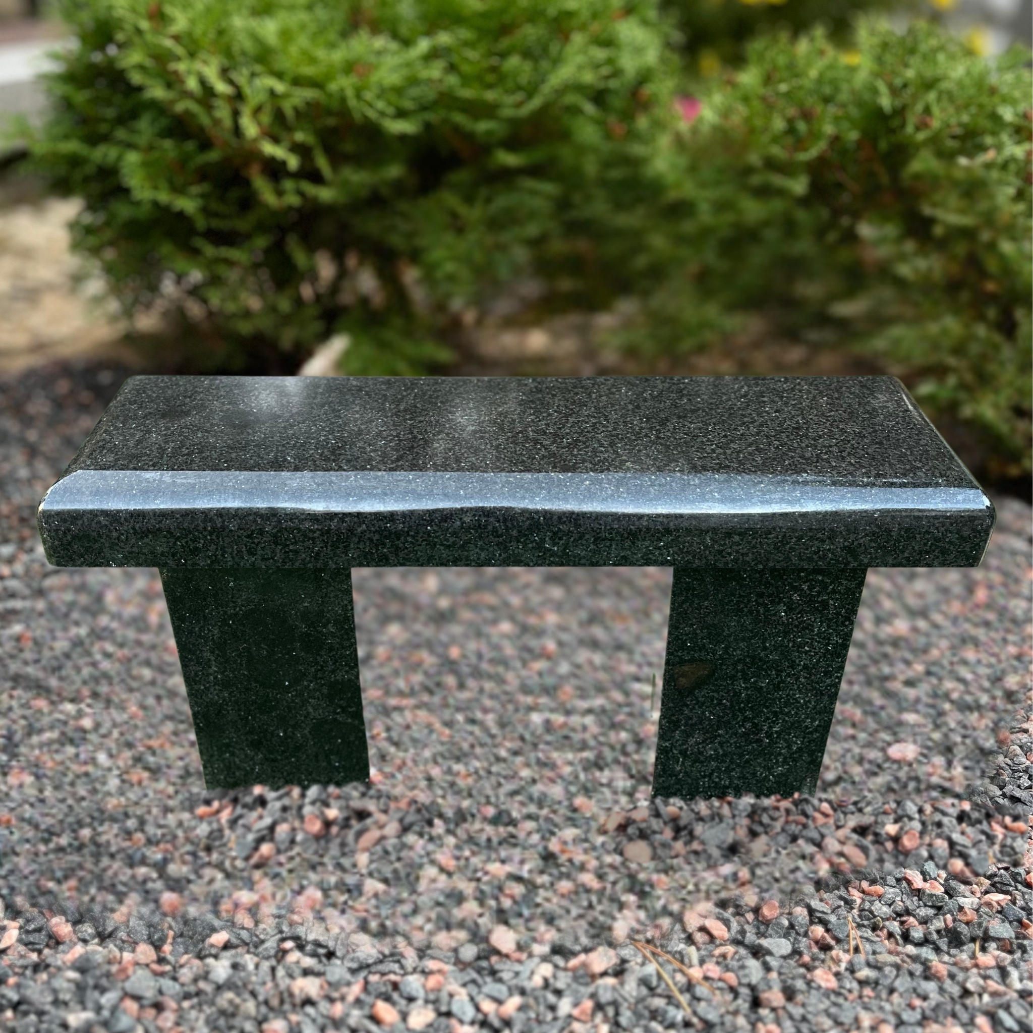Mustast graniidist kalmupink on lihtsa ja selge vormiga ning sobib hauaplatsile istumiseks ja puhkamiseks. Lisaks praktilisusele on pink ka kujunduselement, mis täiendab hauaplatsi väljanägemist. Graniit on vastupidav ja ilmastikukindel materjal, mis peab ajas hästi vastu ning vajab vähest hooldust.