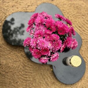 Poleeritud mustast graniidist lille- ja küünlaalus pilvekujulise disainiga. Pehmete vormidega detailid sobivad harmooniliselt kokku looduslähedase hauakujundusega ning pakuvad võimalust lisada platsile isikupära ja hoolitsetud välimust. Alus sobib hauakivi ette lillede ja küünalde asetamiseks. Vastupidav graniit tagab pika eluea ja lihtsa hoolduse.